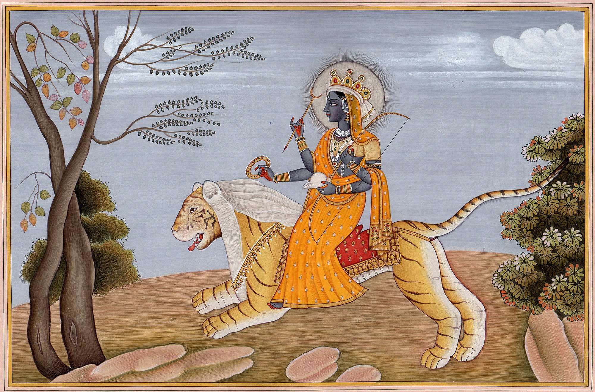 Exotic India Mahadevi's Emergence from Cosmic Void - Watercolor On Paper - Artist Kailash Raj
