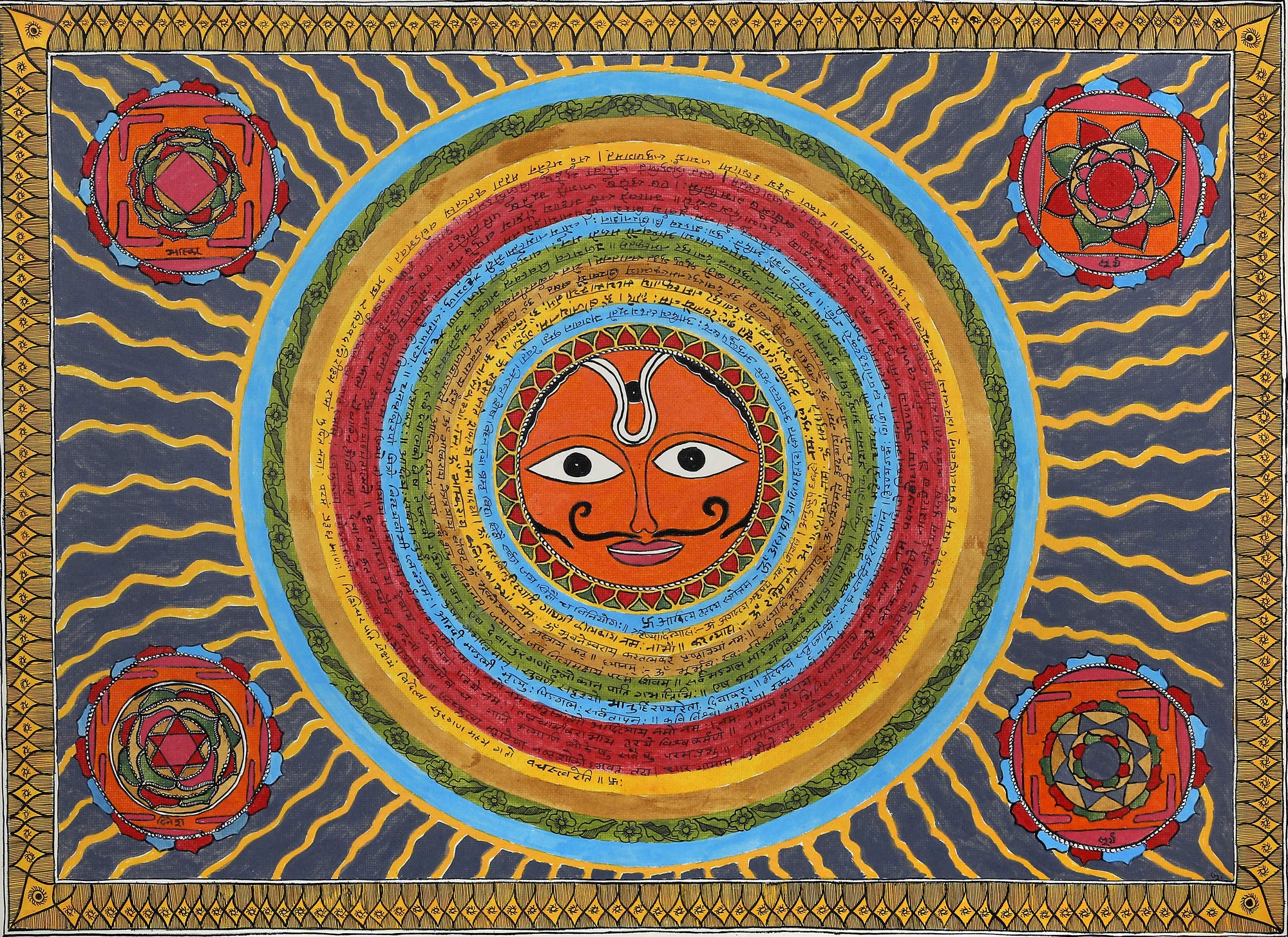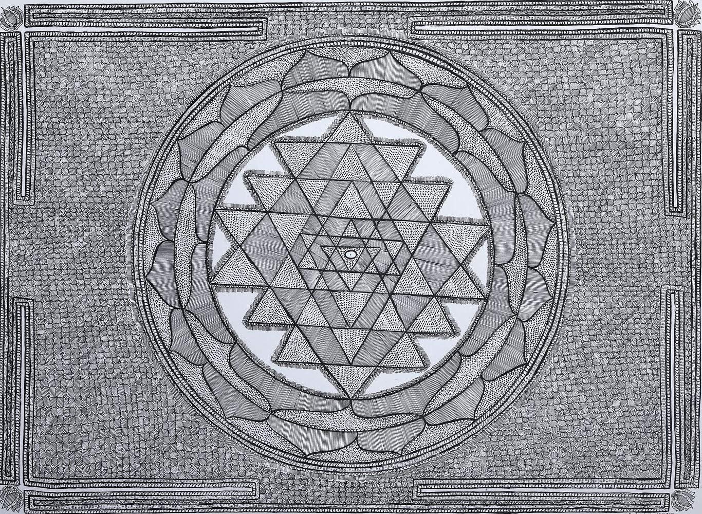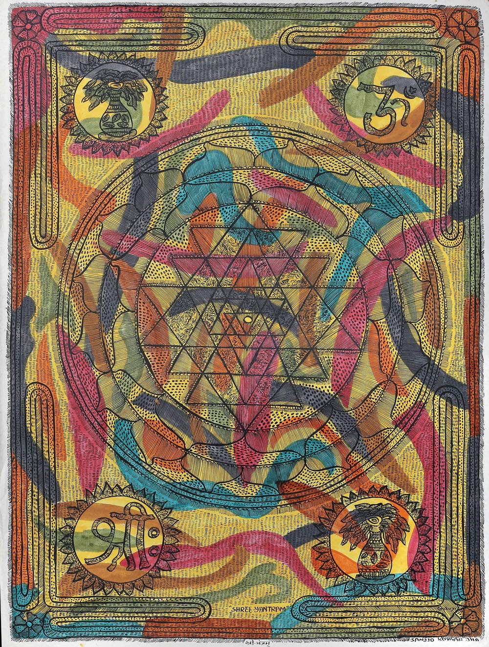 Exotic India Shri Yantra (Shri Chakra) - Madhubani Painting on Hand Made Paper - Folk Painting from The Village o