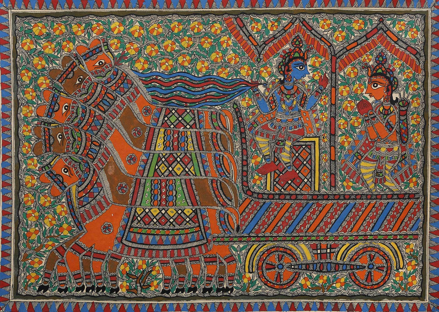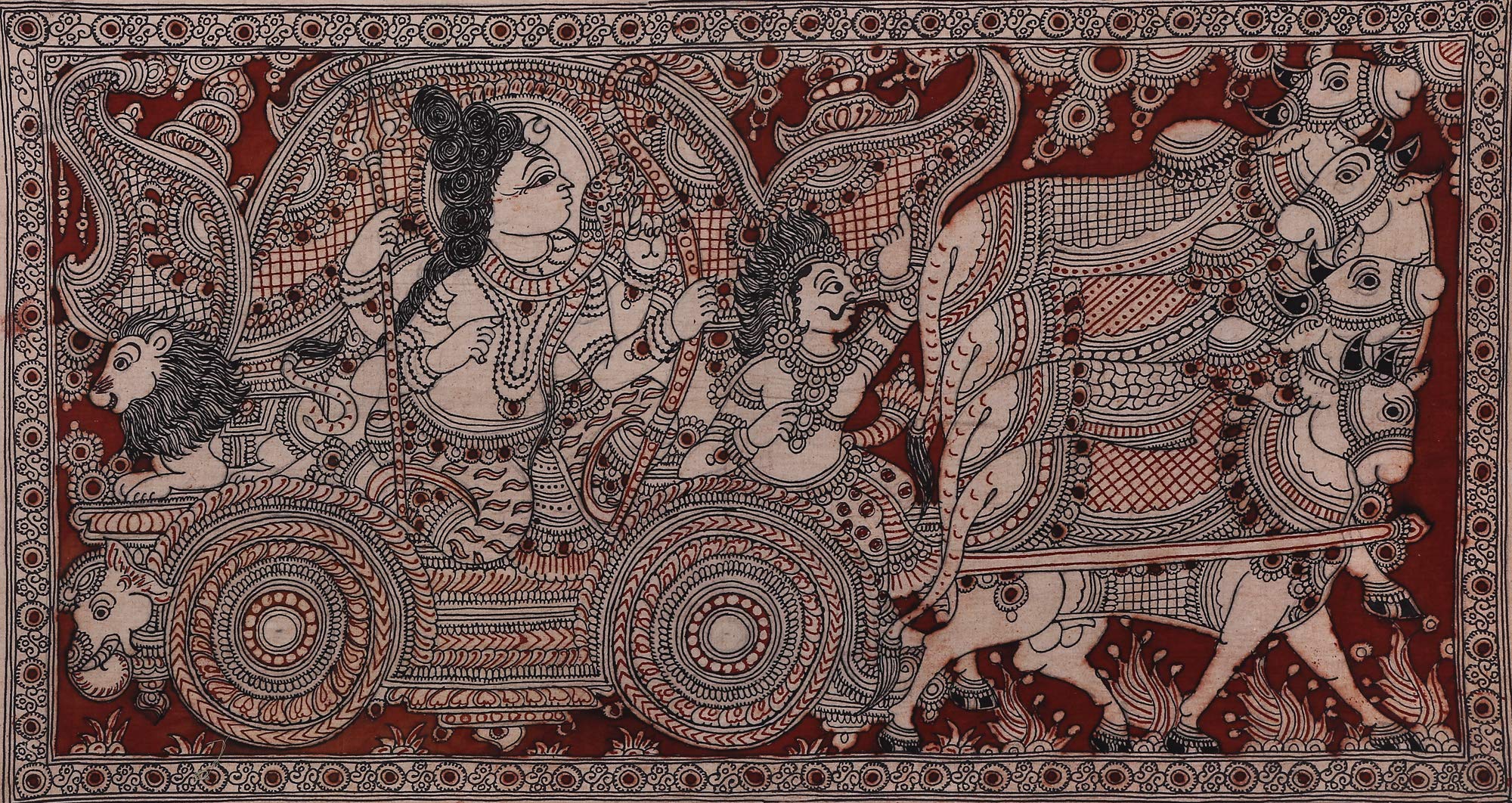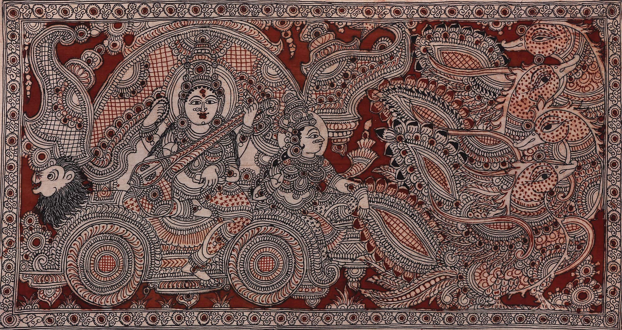 Exotic India Narayana as Krishna Delivering Gita Upadesha to Arjuna - Kalamkari Painting on Cotton - Artist - M.