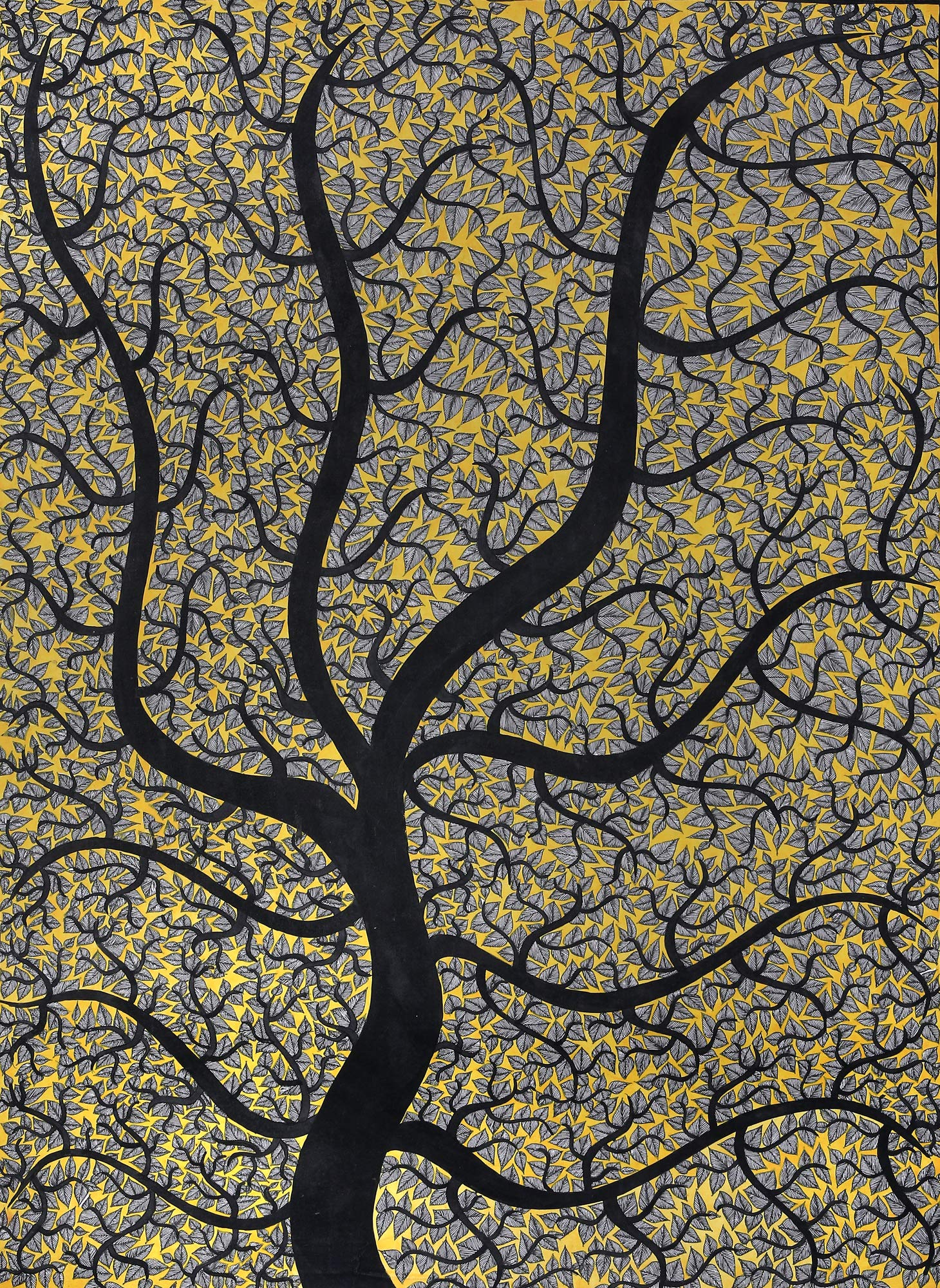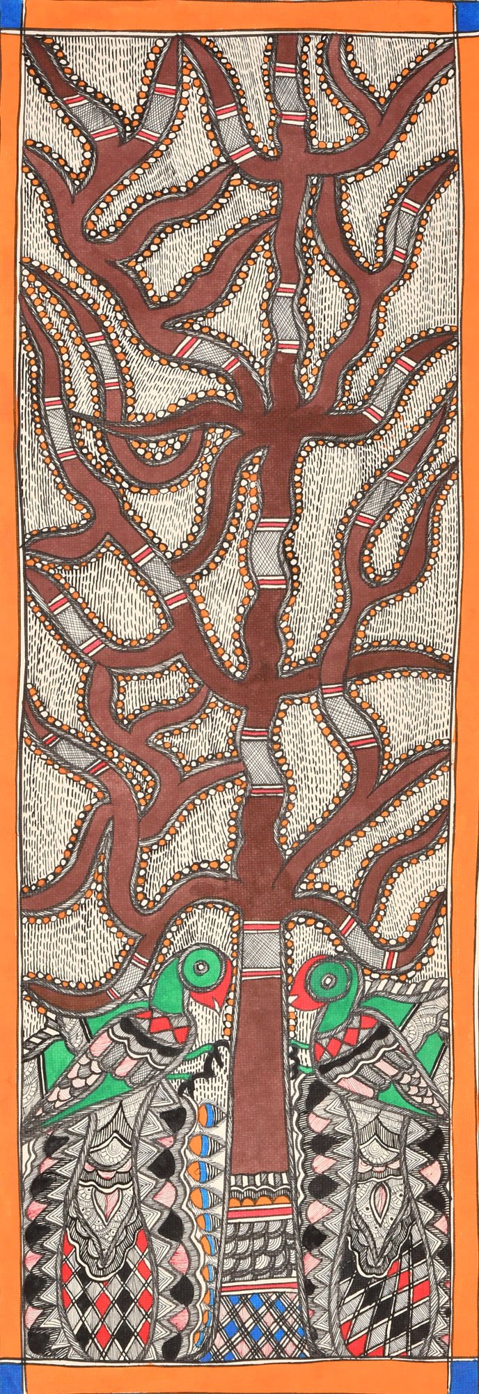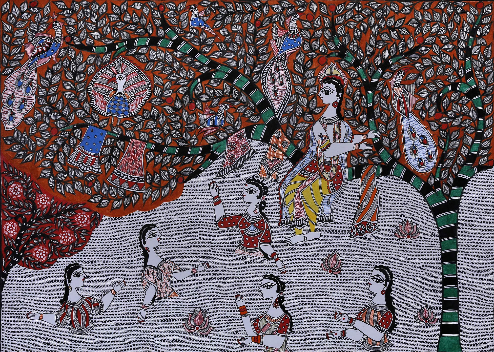 Exotic India Dancing Peacocks on Tree of Life - Madhubani Painting on Hand Made Paper - Folk Painting from The Vi
