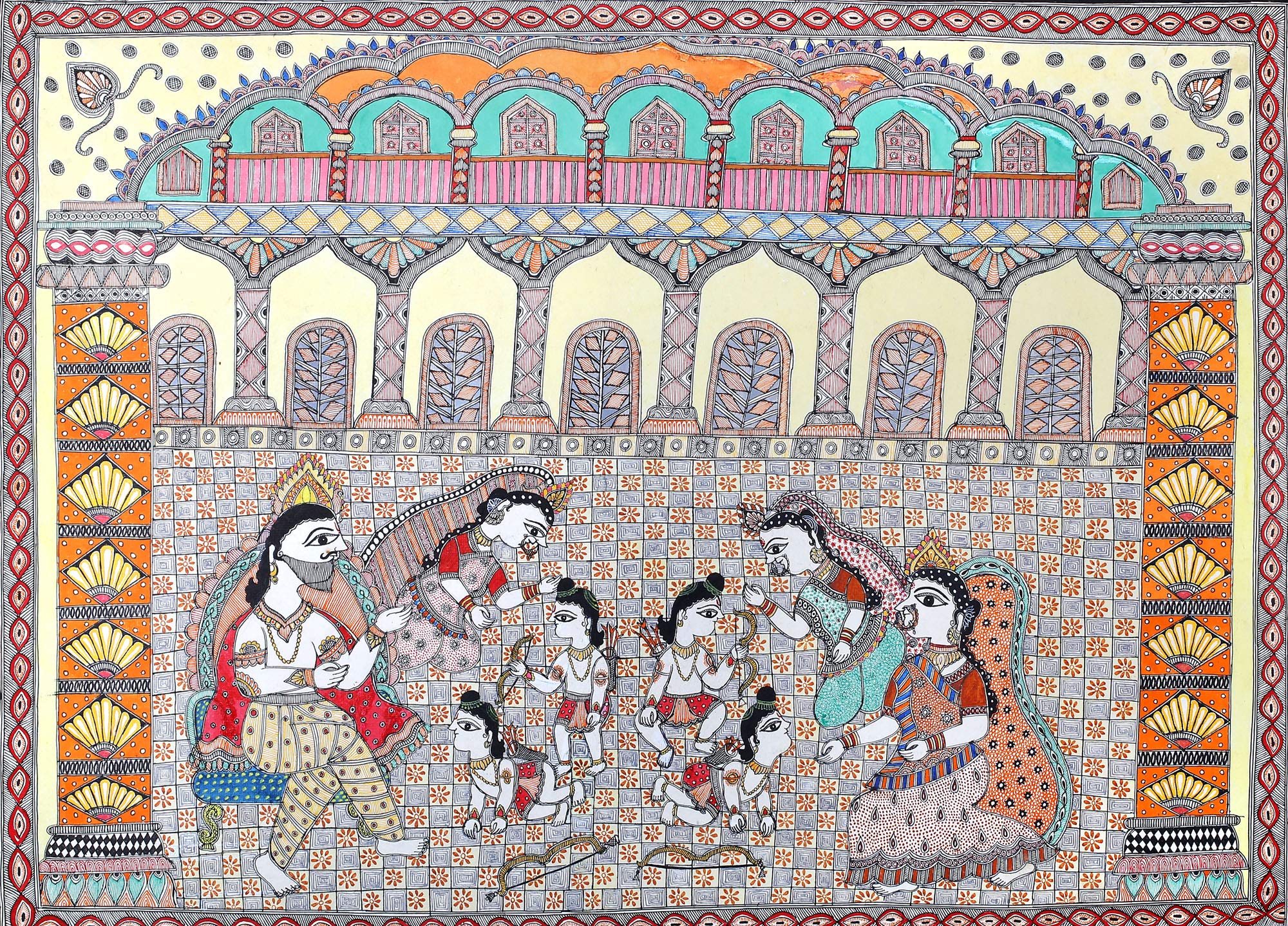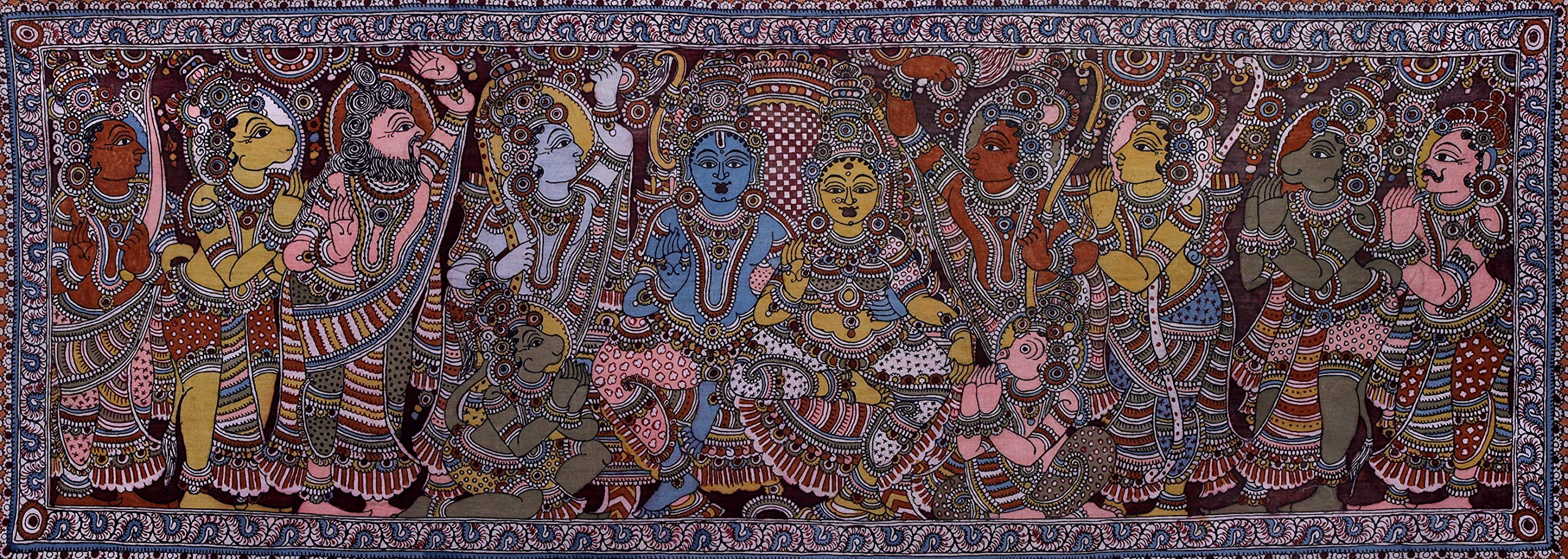 The Exaltation of Lord Rama (Rama Durbar) - Kalamkari Painting on Cotton - Artist - D. Lakshmamma (A