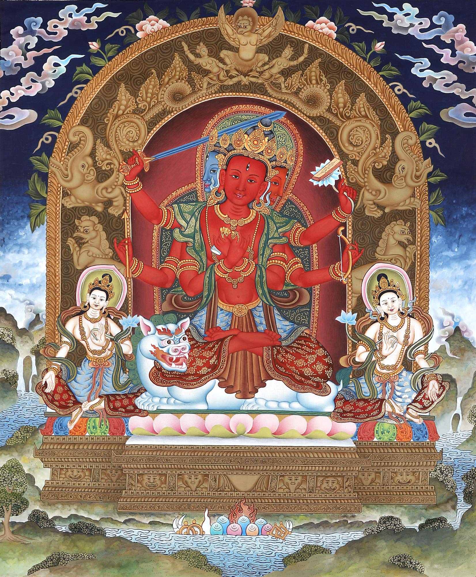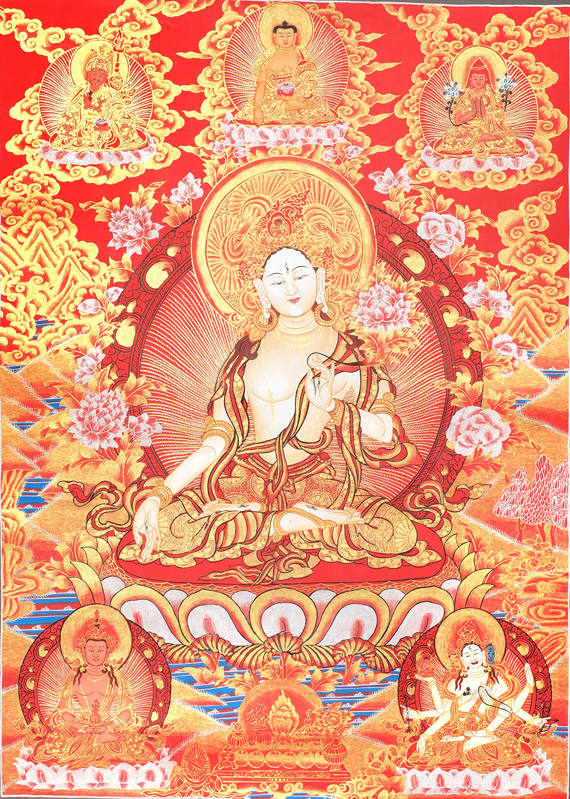 Exotic India Four-Armed Avalokiteshvara (Chenrezig) - Tibetan Buddhist - Tibetan Thangka Painting
