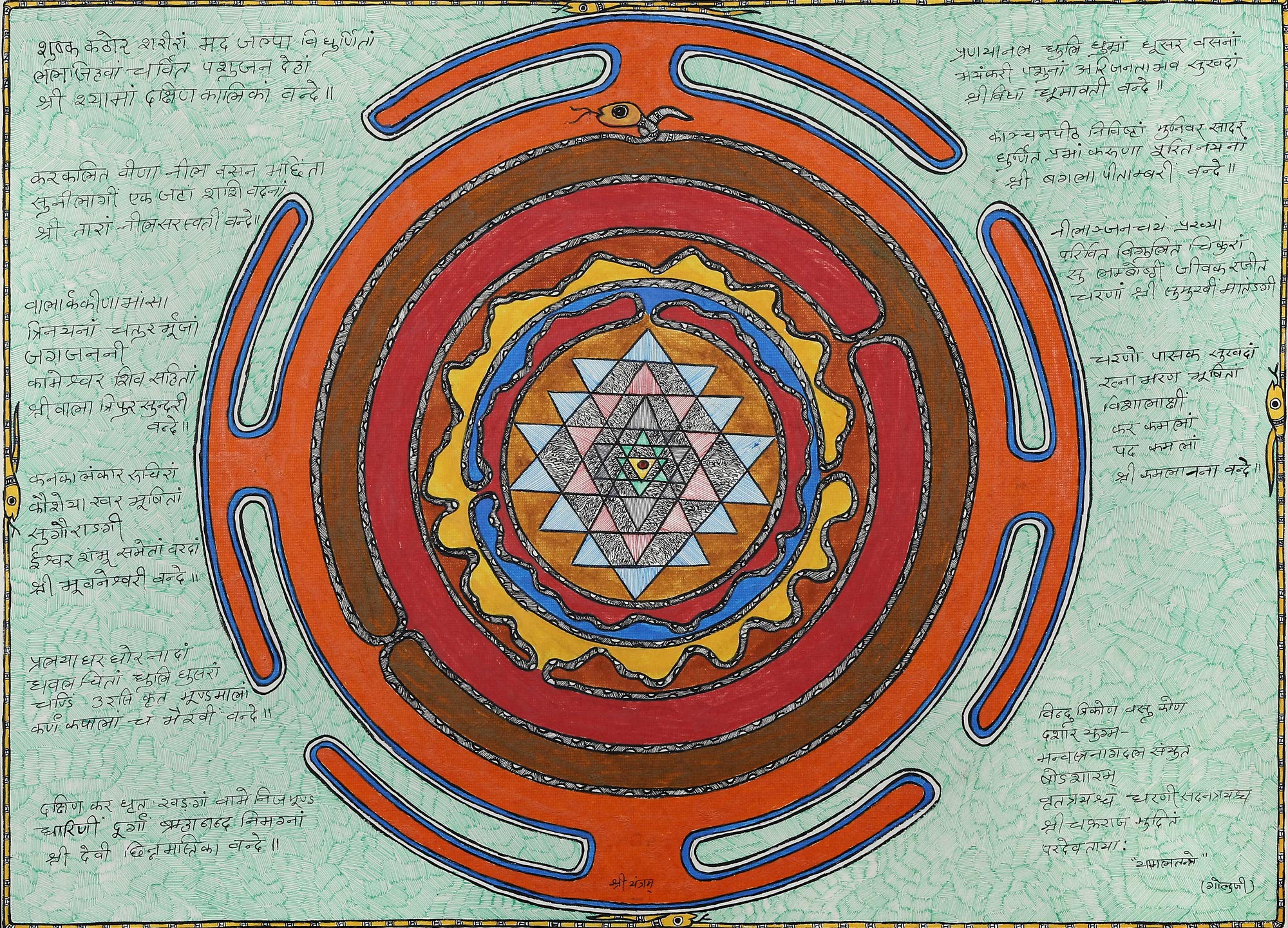 Exotic India Serpent Coiled Shri Yantra with Syllable Mantra (Making of Shri Yantra) - Madhubani Painting on Hand