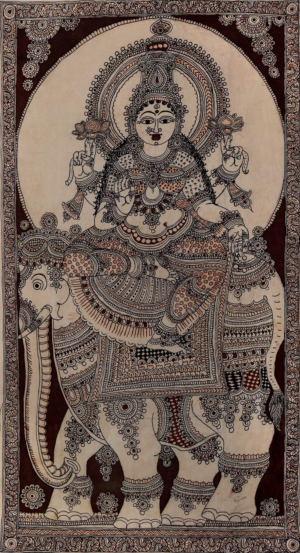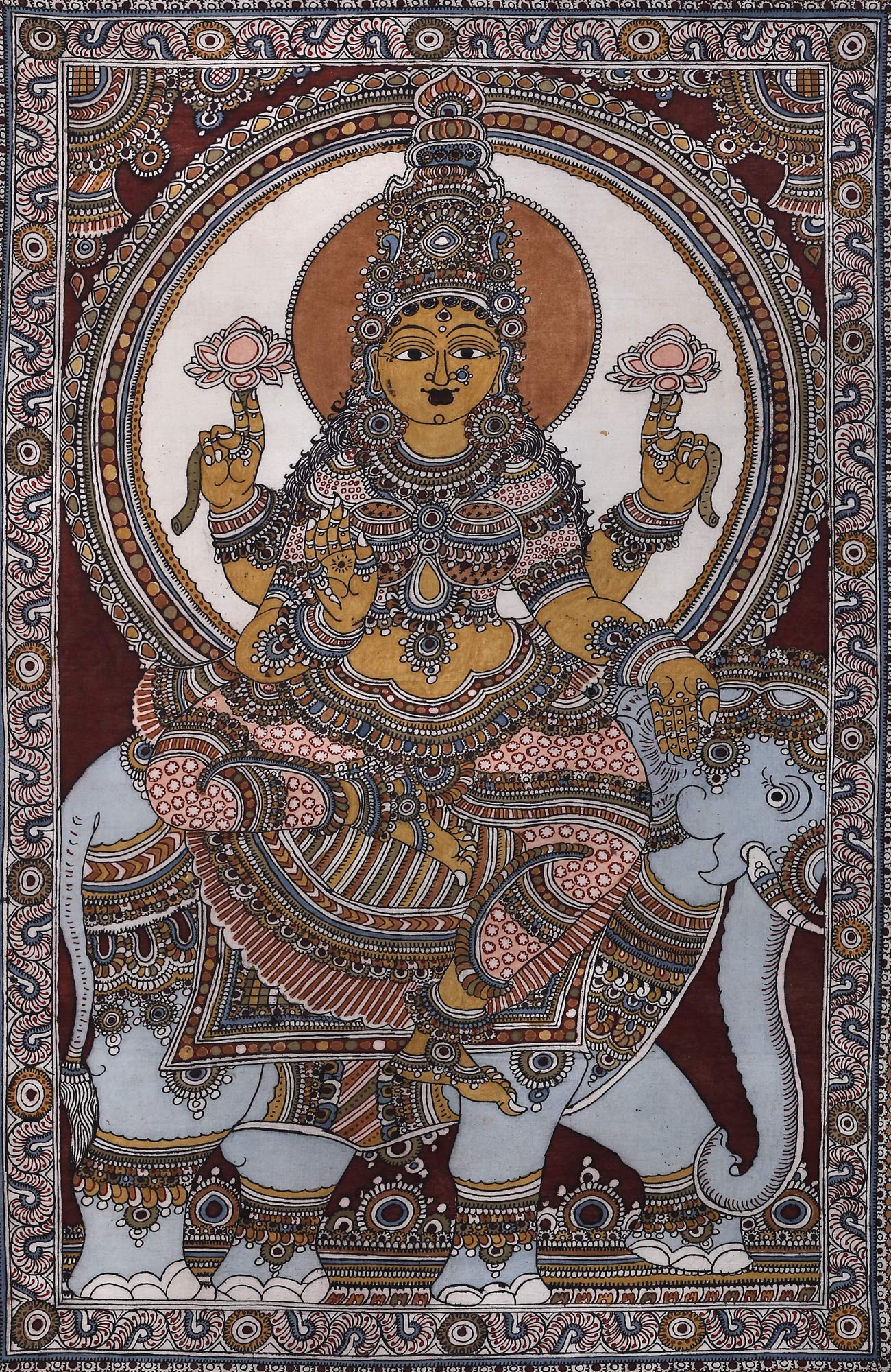 Exotic India The Adoration of Lord Ganesha - Kalamkari Painting on Cotton - Artist - D. Lakshmamma (Andhra Prades