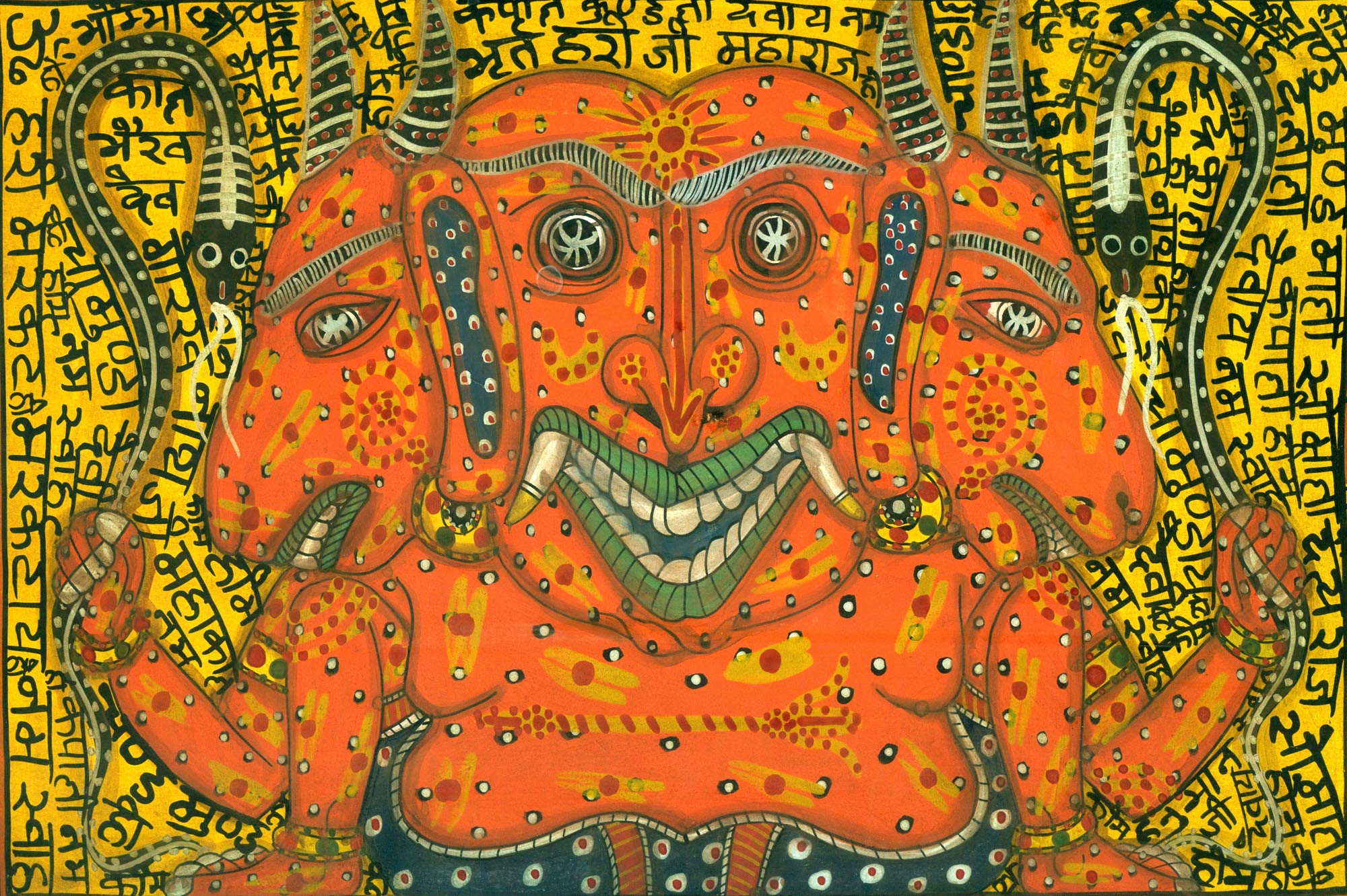 Exotic India The Three Headed Representation of Devil - Watercolor on Paper