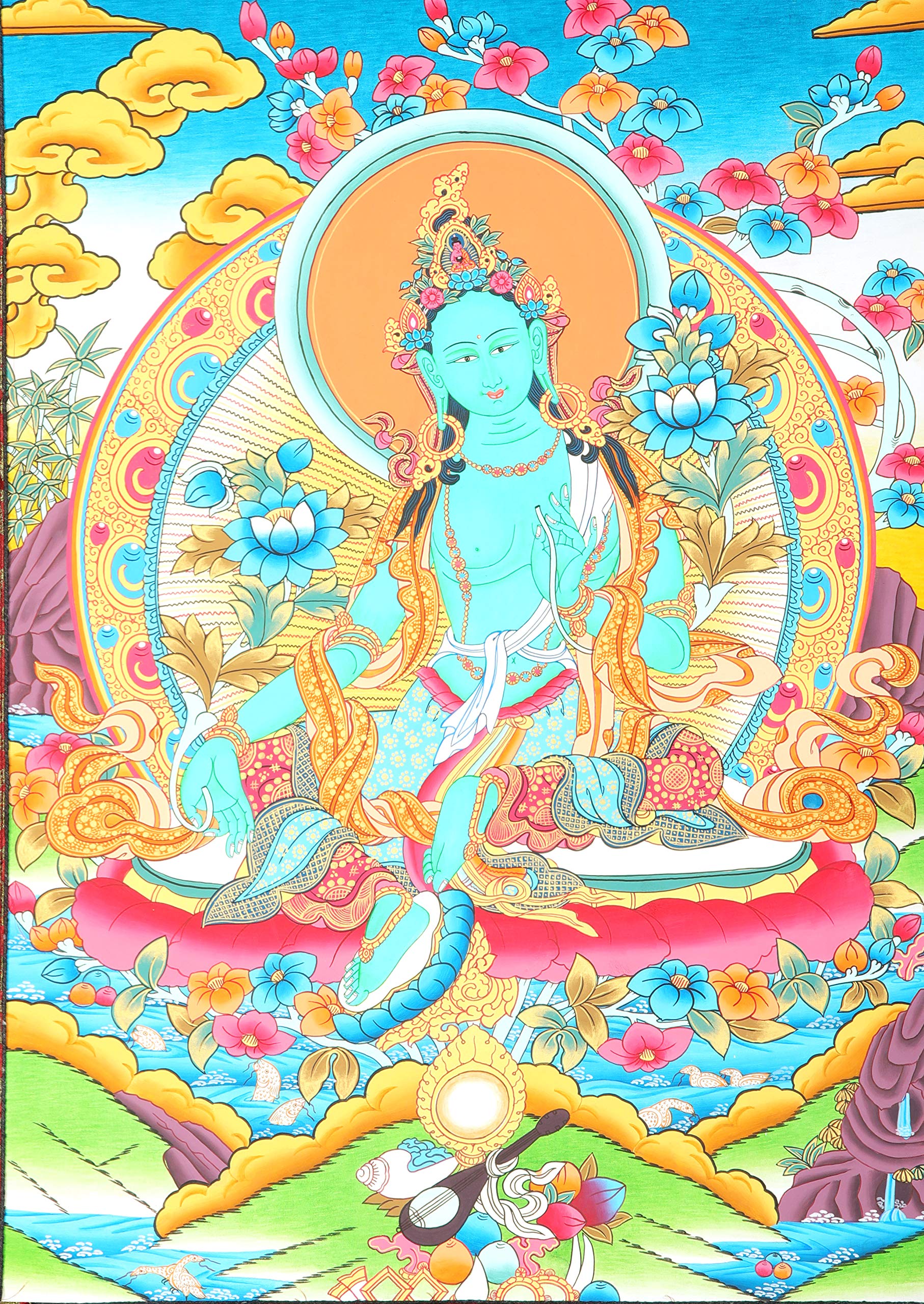 Exotic India Tibetan Buddhist Deity Green Tara - The Beauty of Enlightenment - Tibetan Thangka Painting
