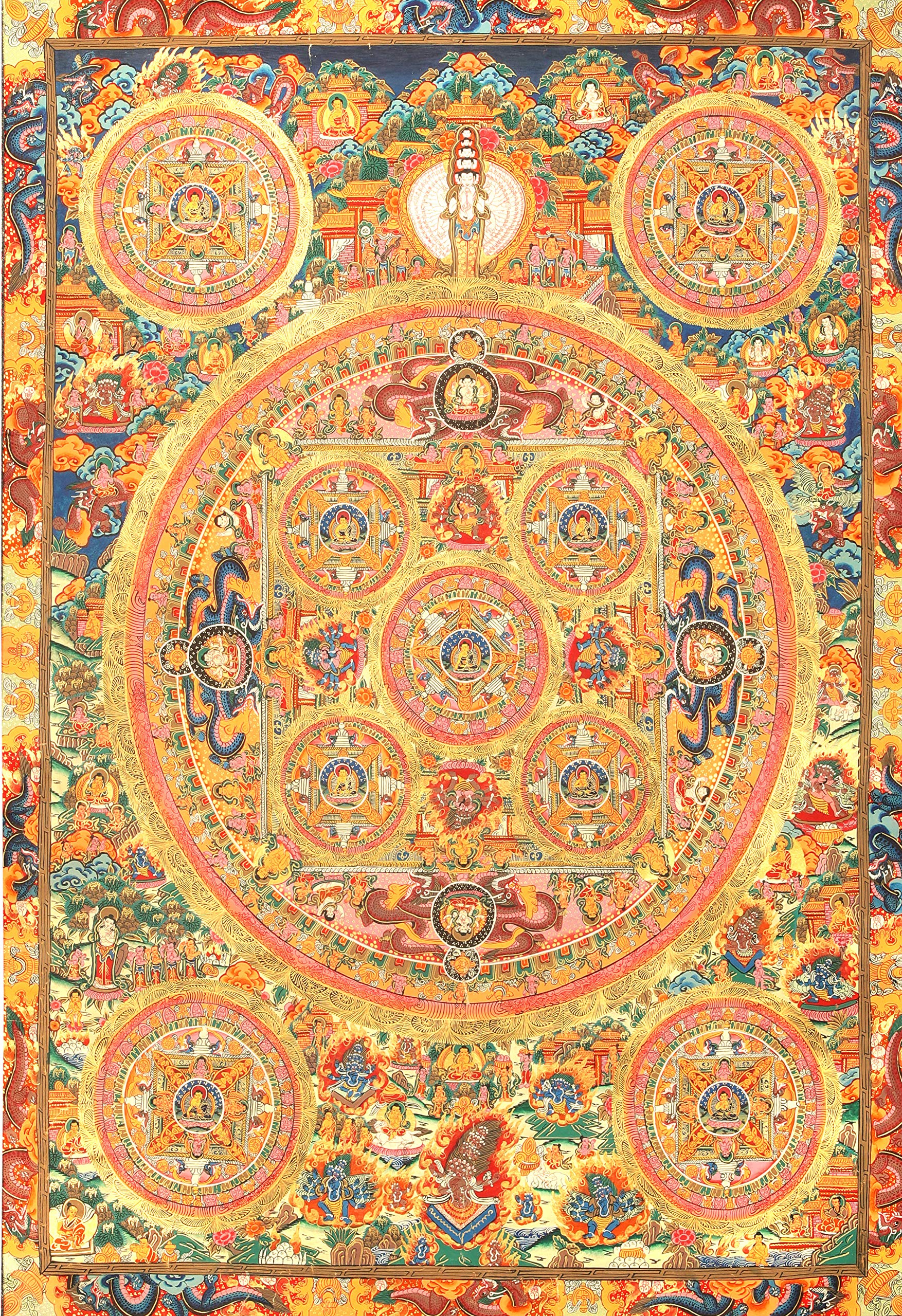 Exotic India Super Large Mandala of Gautam Buddha - Tibetan Buddhist - Tibetan Buddhist Thangka Painting