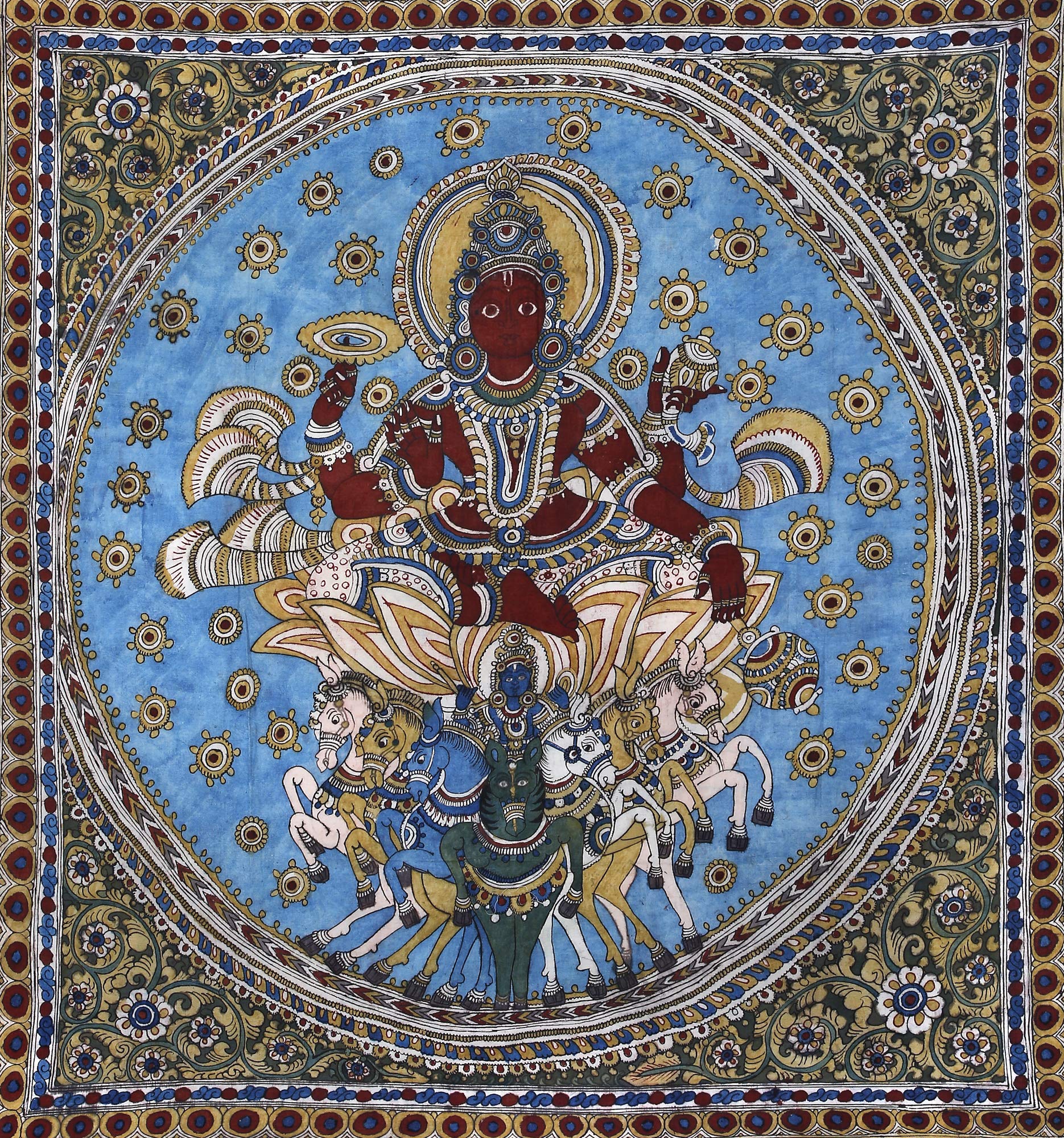 Exotic India Vishnu Mahesh with Ganesha in Centre - Kalamkari Painting on Cotton - Artist - D. Lakshmamma (Andhra