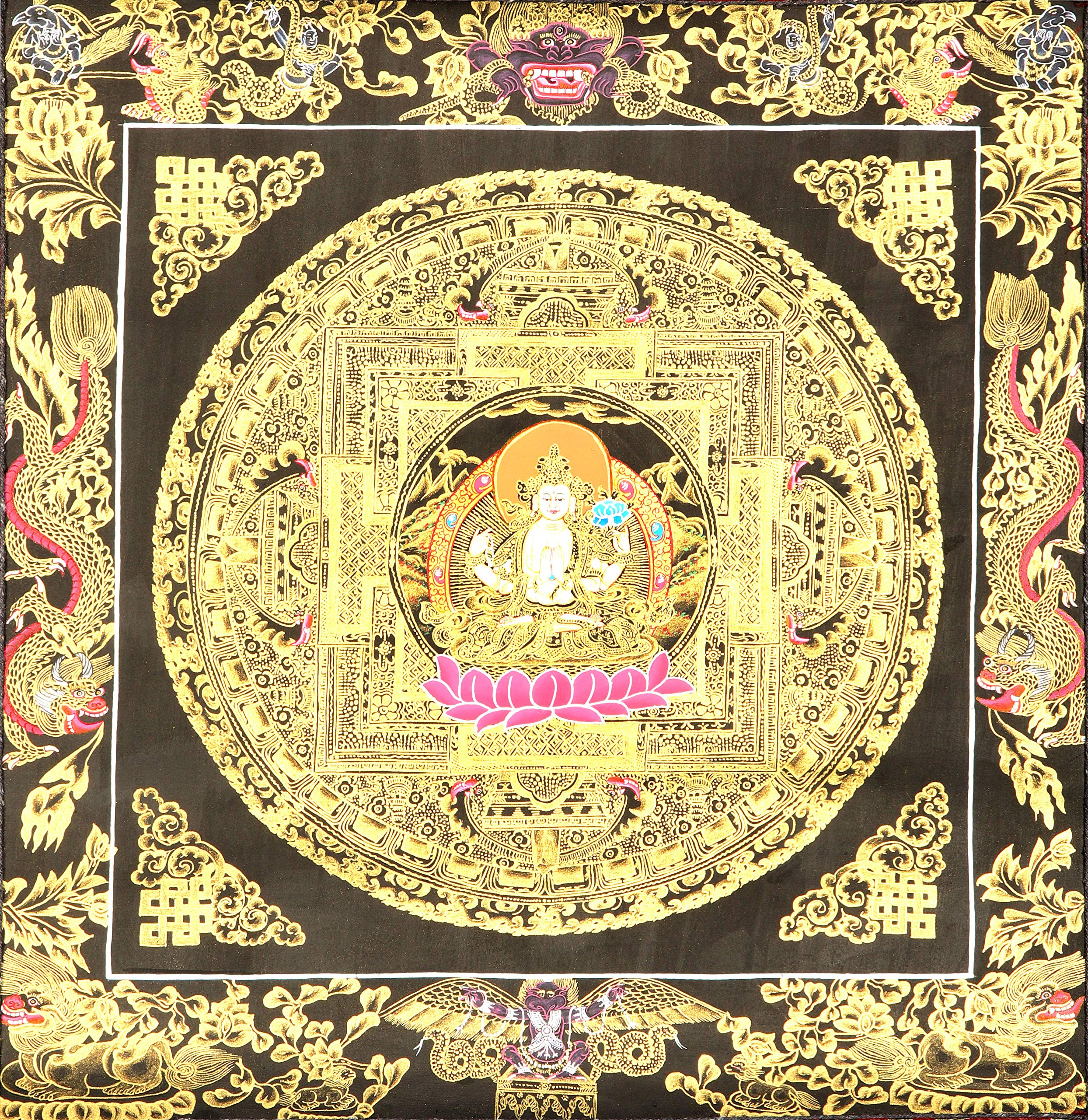 Exotic India Chenrezig Mandala - Tibetan Buddhist - Tibetan Thangka Painting