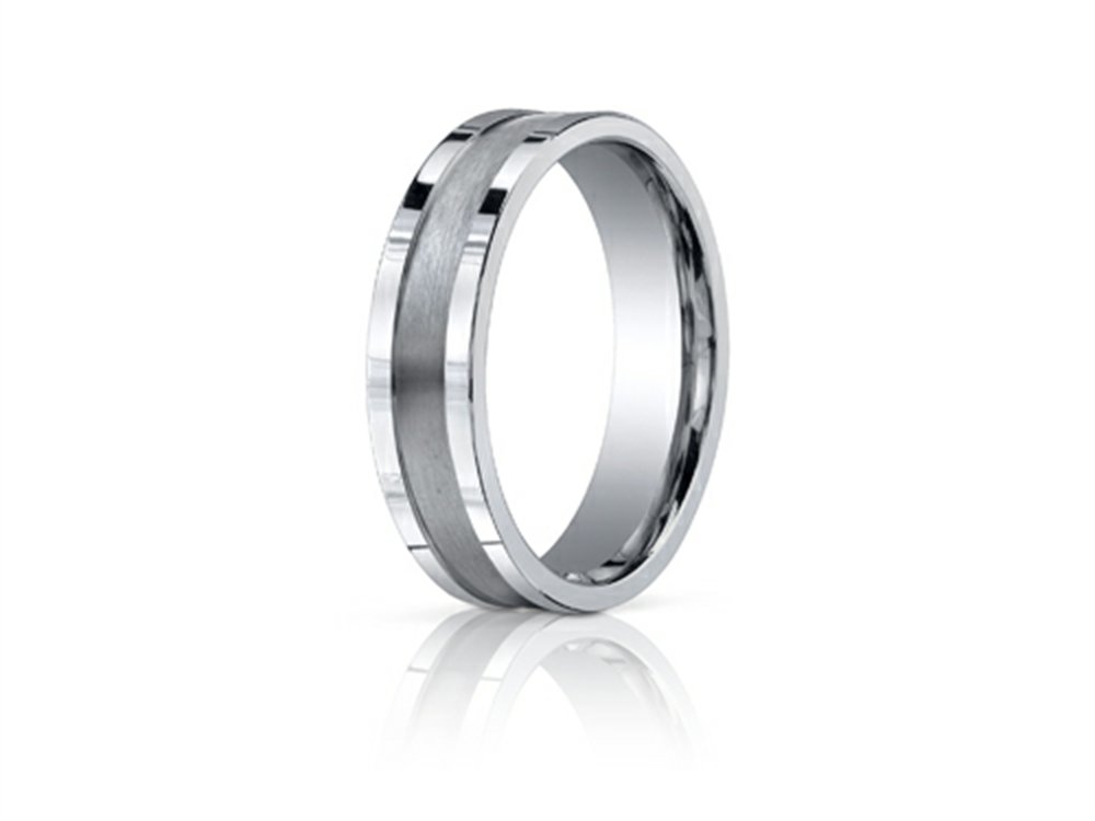 6mm Comfort-fit Satin-finished Center Squared Edge Carved Design Band 18kt Gold