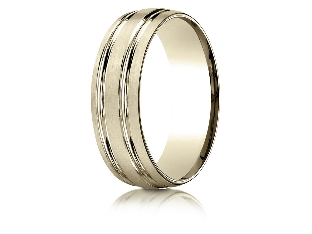 18k Gold 7mm Comfort-fit Satin-finished with Parallel Grooves Carved Design Band