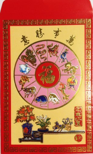 Feng Shui Import 4 X 100 Chinese Red Envelopes with Zodiac Animal Pictures