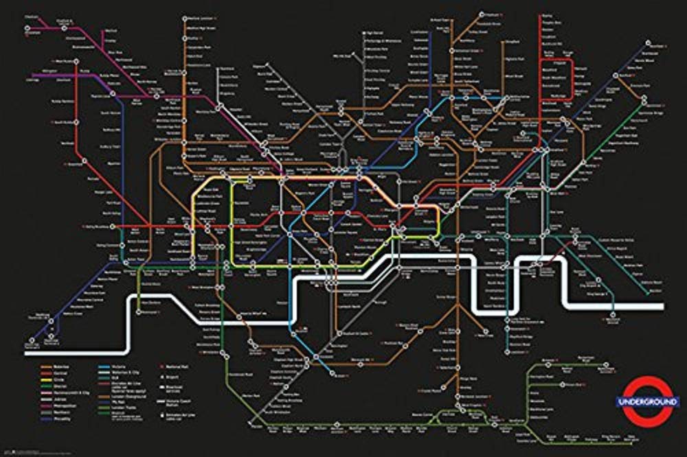 Frame USA Laminated Transport for London Black Map Poster Print 24x36
