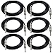 GLS Audio 6ft Patch Cable Cords - 1/4" TRS To 1/4" TRS Black Cables - 6' Balanced Snake Cord - 6 PACK