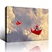 Gardenia Art men on red paper boats floating in the cloudy sky anime painting bathroom accessories wall art home decor for bedroom living room framed 12x16 in 1 PCS