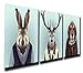 Gardenia Art - Mr. RABIT Elk and Dog Canvas Prints Modern Wall Art Paintings Stretched and Framed Artwork for Room Decoration,16x16 inch Ready to Hang