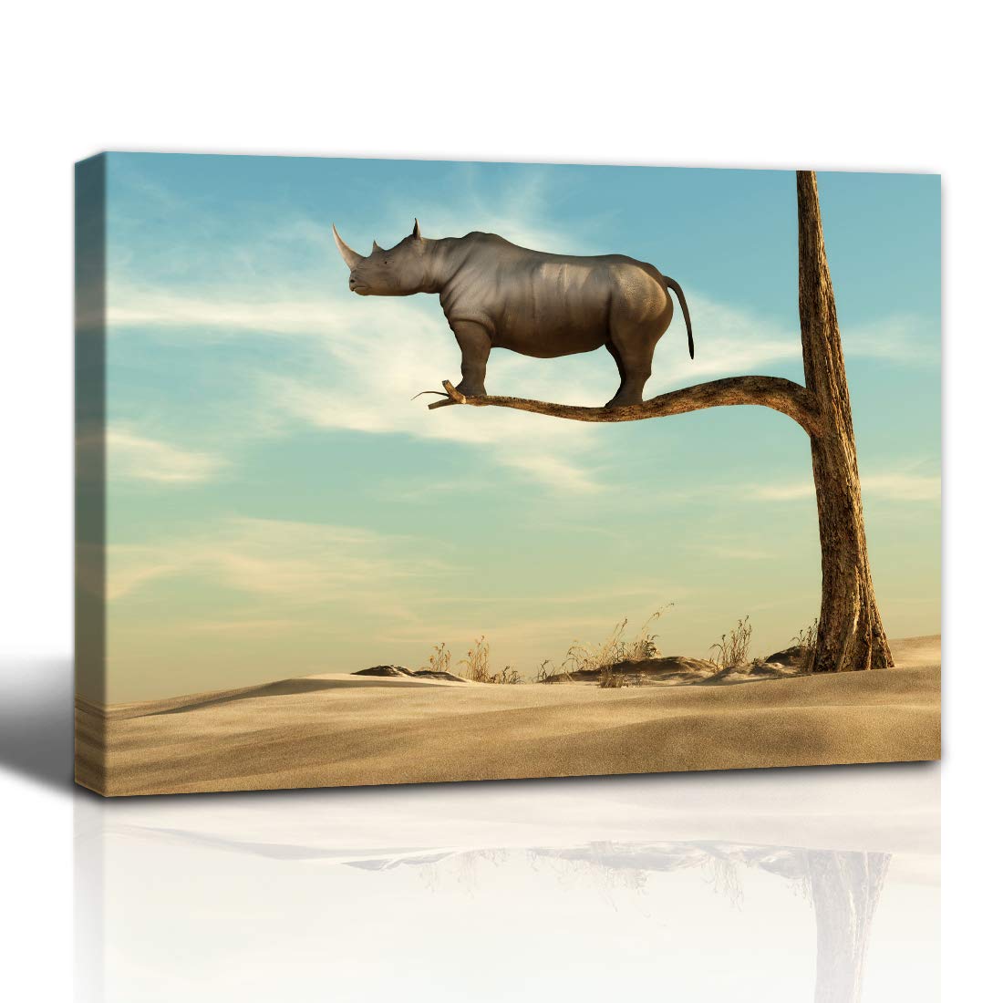 Gardenia Art rhino stands on thin branch of withered tree anime painting bathroom accessories wall art home decor for bedroom living room framed 12x16 in 1 PCS