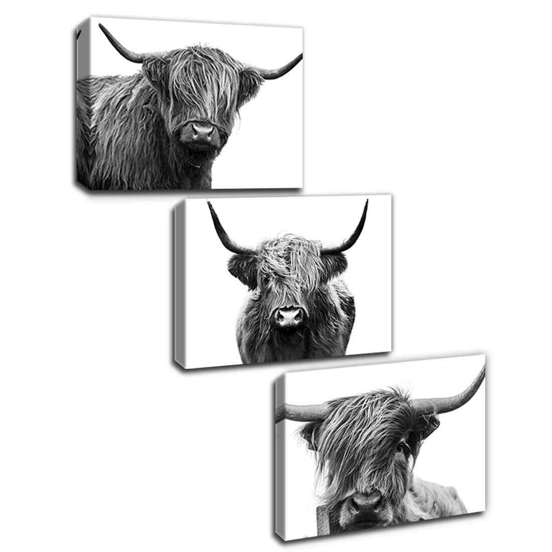 Gardenia Art Scottish Cow Canvas Print Animal Painting Wall Art for Living Room pet Shop Zoo Decoration 12x16 inch/Piece, unFramed, 3 Panels