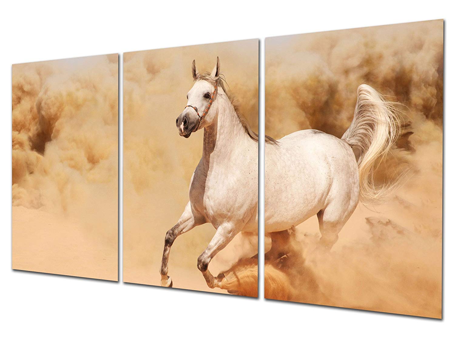 Gardenia Art - Animal Canvas Prints White Horses Wall Art Paintings Running Horse Pictures Artworks for Bedroom Living Room Decoration,12x16 inch/Piece, Framed, 3 Panels