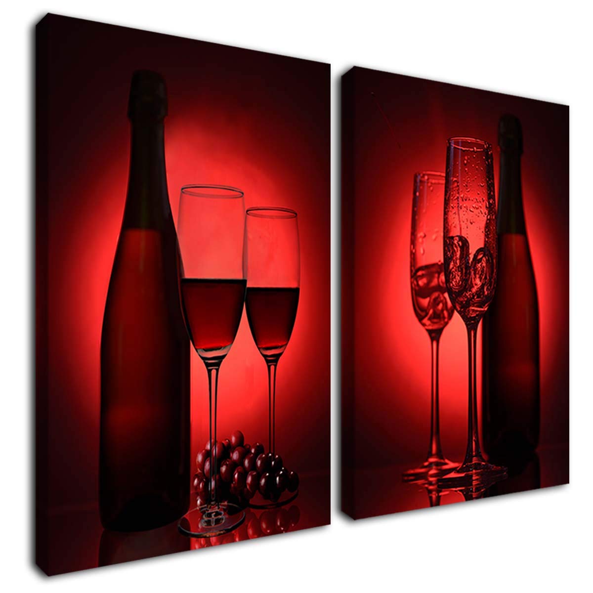 Gardenia Art - Red Cocktail Wine Canvas print kitchen decorations theme sets Wall Art for dining room bar decor 12x16 in 2 panels stretched and framed