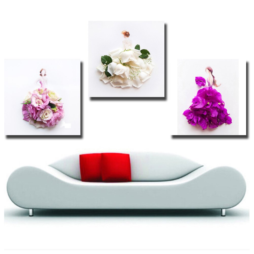 Gardenia - Creative Petal Women and Girl Dresses Art Canvas Wall Art Prints 12 x 12 Inch Stretched and Framed Modern Decor Paintings Artwork for Living Room and Weeding Bedroom Decorations
