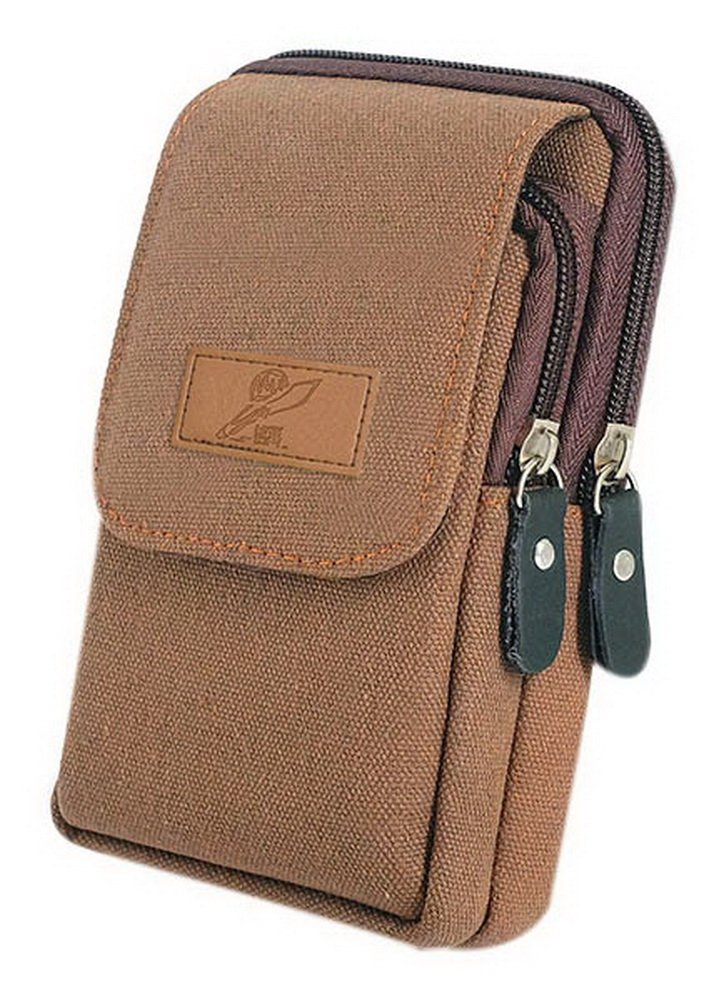 Gentle Meow Double Layer Cell Phone Bag Outdoor Waist Bag Fits 5.5-inch Mobile Phones, Brown