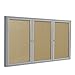 Ghent 36"x72" 3-Door indoor Enclosed Bulletin Board , Shatter Resistant, with Lock, Satin Aluminum Frame - Natural Cork (PA33672K) Malde in the USA