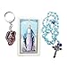 Our Lady of The Miraculous Medals Glass Blue Beads Rosary with Miraculous Dangling Medal Includes Our Lady Key Chain and a Prayer Card Blessed by HIS Holiness