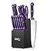 Ginsu Essential Series 14-Piece Stainless Steel Serrated Knife Set – Cutlery Set with Purple Kitchen Knives in a Black Block, 03891DS