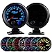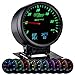 GlowShift Black 7 Color 35 PSI Turbo Boost Gauge Kit - Includes Mechanical Hose & Fittings - Black Dial - Clear Lens - for Car & Truck - 2-1/16" 52mm