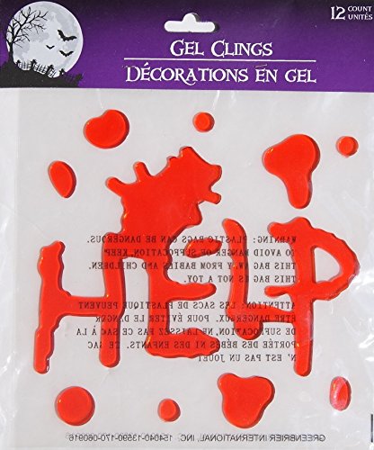 Halloween Gel Window Clings - Help and Blood Spatter - 12 Piece