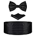 HDE Black Cummerbund, Bow Tie, Pocket Square for Men Satin Tuxedo Set