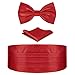 HDE Red Cummerbund and Bow Tie, Pocket Square for Men Satin Tuxedo Set