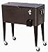 HIO 80 Qt Outdoor Patio Cooler Table On Wheels, Rolling Cooler, Dark Brown Wicker