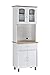 Hodedah Long Standing Kitchen Cabinet with Top & Bottom Enclosed Cabinet Space, One Drawer, Large Open Space for Microwave, White