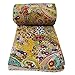 Rajasthali Indian Cotton Bedspread King Size Floral Print Kantha Stitch, 90 X 108 Inches