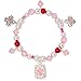 Girls Cross Pink Red Bead Silver Tone Filigree Stretch Charm Bracelet