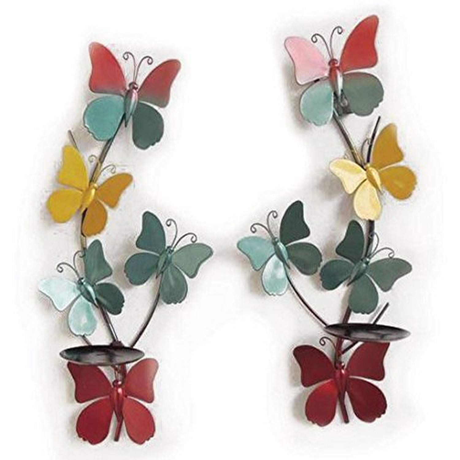 Home Source 400-31081 Butterfly Candle Holders Wall Decor, 4" x 8" x 17", Golden Yellow/Sea Foam/Red