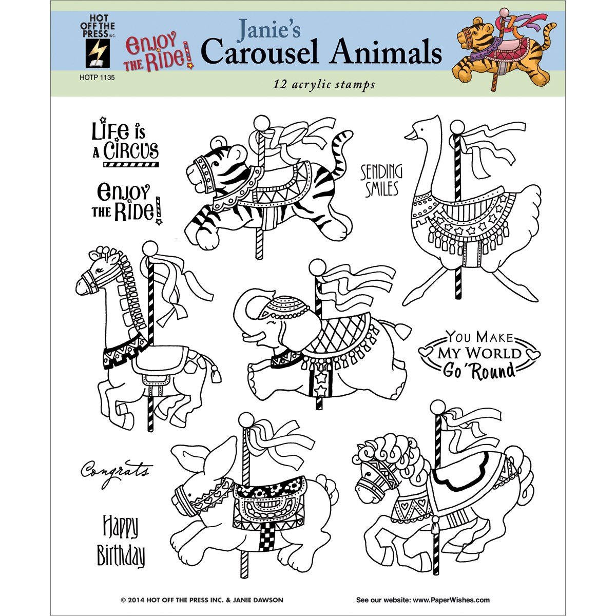 Hot Off The Press Janie's Carousel Animals 12 Acrylic Stamps by HOTP 1135