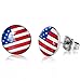 INBLUE Women's Stainless Steel Stud Earrings Round Green Red White American USA Pentagram Flag