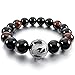 INBLUE Men,Women's 12mm 14mm Energy Bracelet Link Wrist Energy Stone Black Silver Tone Dragon Buddha Mala Bead