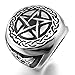 INBLUE Men's Stainless Steel Ring Silver Tone Black Pentacle Pentagram Round Signet