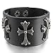 INBLUE Men's Wide Alloy Genuine Leather Bracelet Bangle Cuff Black Celtic Medieval Cross Adjustable