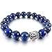 INBLUE Women,Men's 10mm 12mm Alloy Energy Bracelet Link Wrist Energy Stone Blue Silver Tone Buddha Mala Bead