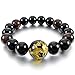INBLUE Men,Women's 12mm 14mm Energy Bracelet Link Wrist Energy Stone Black Gold Tone Dragon Buddha Mala Bead