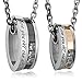 INBLUE Men, Women's 2-Piece Stainless Steel Pendant Necklace CZ Silver Gold Tone Black Couple with 20-Inch and 23-Inch Chain