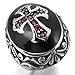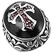 INBLUE Men's Stainless Steel Ring CZ Silver Tone Black Red Cross Knight Fleur De Lis Oval