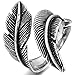 INBLUE Men,Women's Stainless Steel Ring Black Silver Tone Feather Vintage