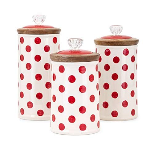 IMAX Ty Berry Patch Polka Dot Canisters Ceramic Containers (Set Of 3), Red