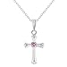 In Season Jewelry Rhodium Plated Small Girls Pink Crystal Plain Cross Pendant Necklace 16"